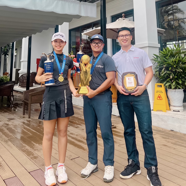 Đại diện Altruist Vietnam chụp ảnh lưu niệm cùng Golfer Nguyễn Anh Minh - Tuyển thủ đạt Huy chương Bạc tại giải đấu